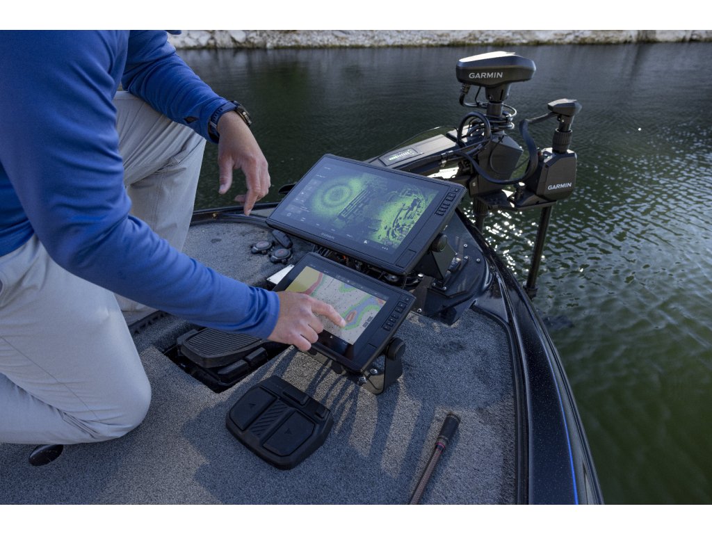 Optimalizujte sonar z kompatibilního chartplotteru Garmin pomocí ovládacích prvků na obrazovce: můžete měnit režimy skenování, upravovat frekvence sonaru a vybírat palety živých barev.