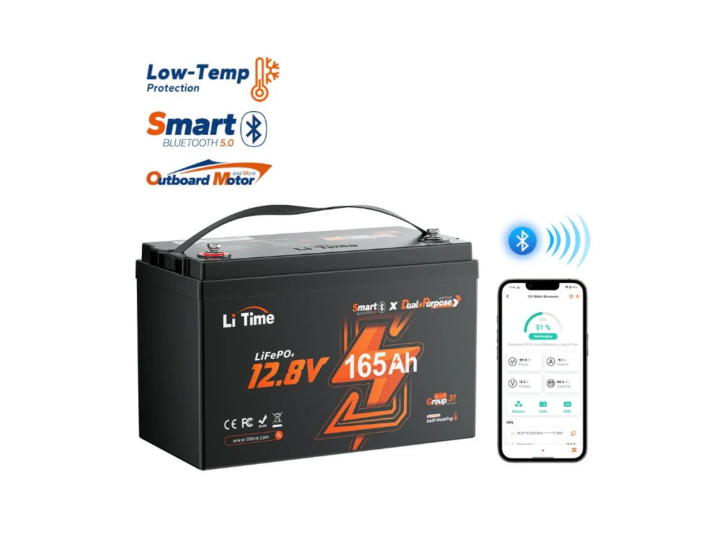 S víceúčelovou lithiovou lodní baterií LiTime 12V 165Ah můžete s jistotou nastartovat svůj lodní motor a napájet palubní elektroniku po celý den – světla, radar, sonar a další. Jedna baterie, žádné další starosti.