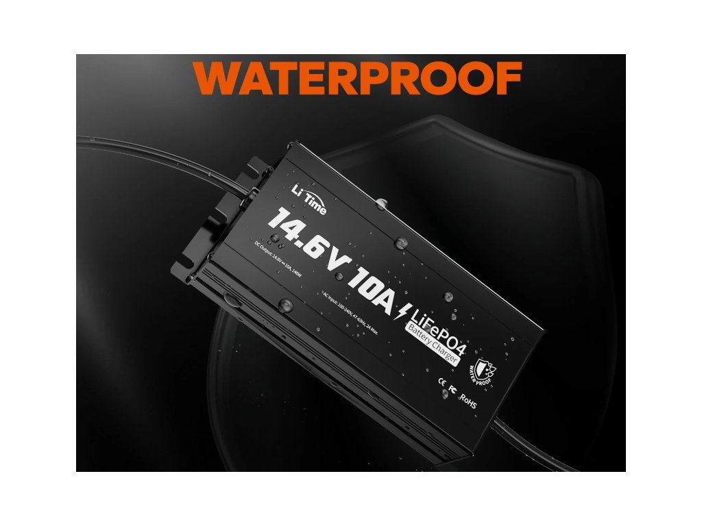 LiTime 14,6V 10A LifePO4 nabíječka VODOTĚSNÁ